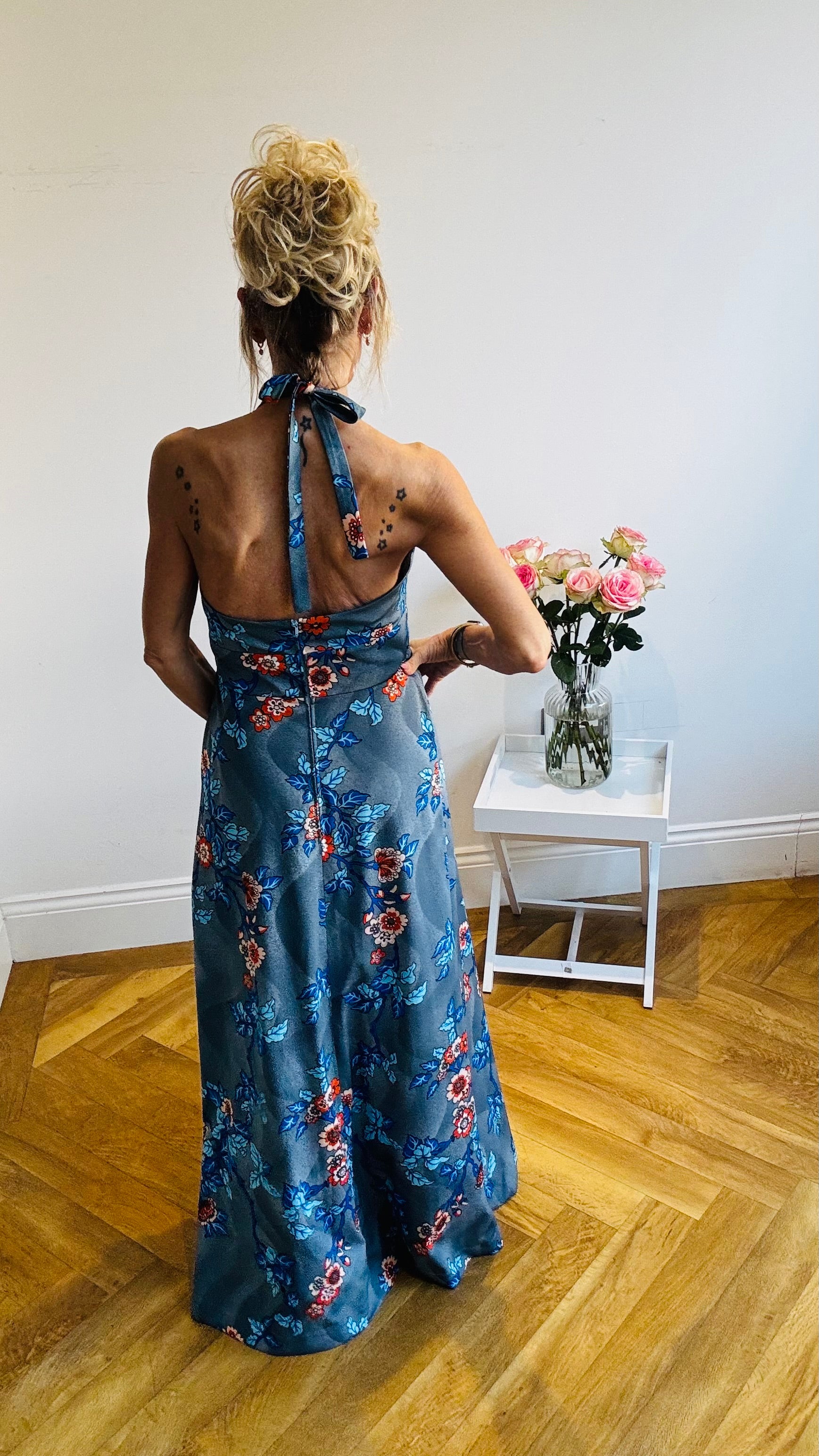 Step into timeless elegance with the Diane Von Furstenberg 1970’s Maxi. This rare halter dress embodies the spirit of vintage style, making it an iconic addition to any wardrobe. Embrace the charm of the 1970s and radiate confidence in this fabulous classic!