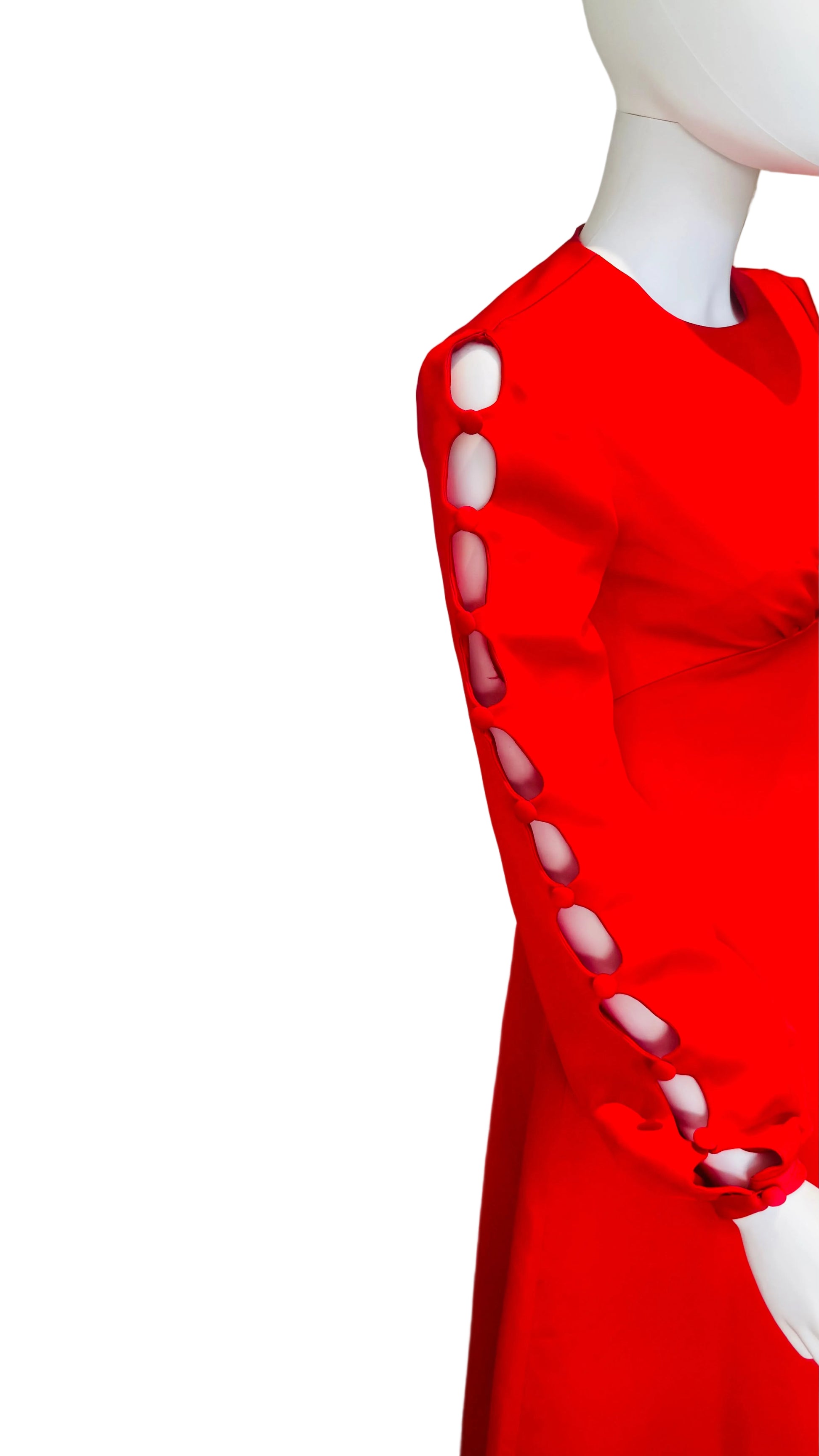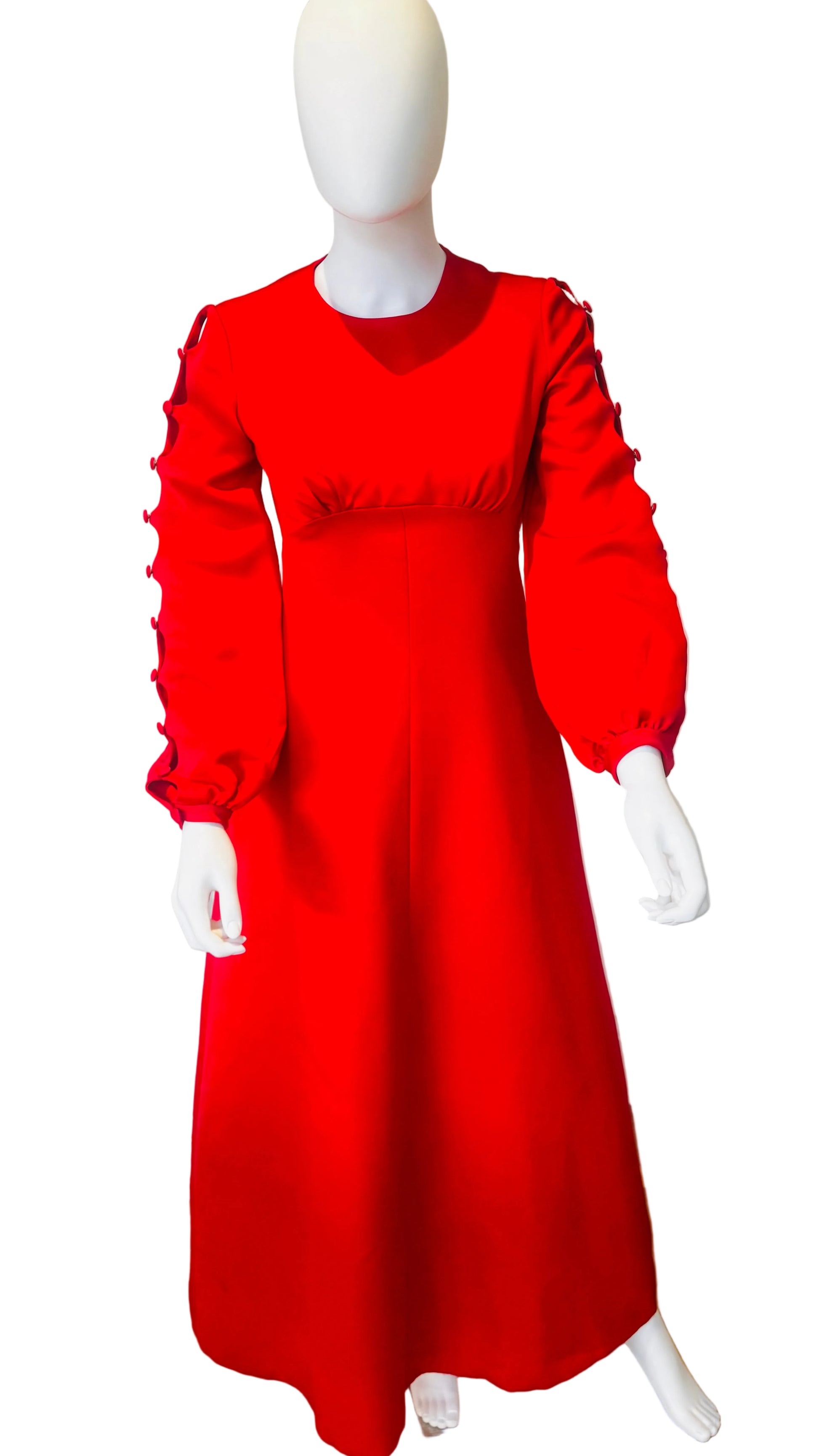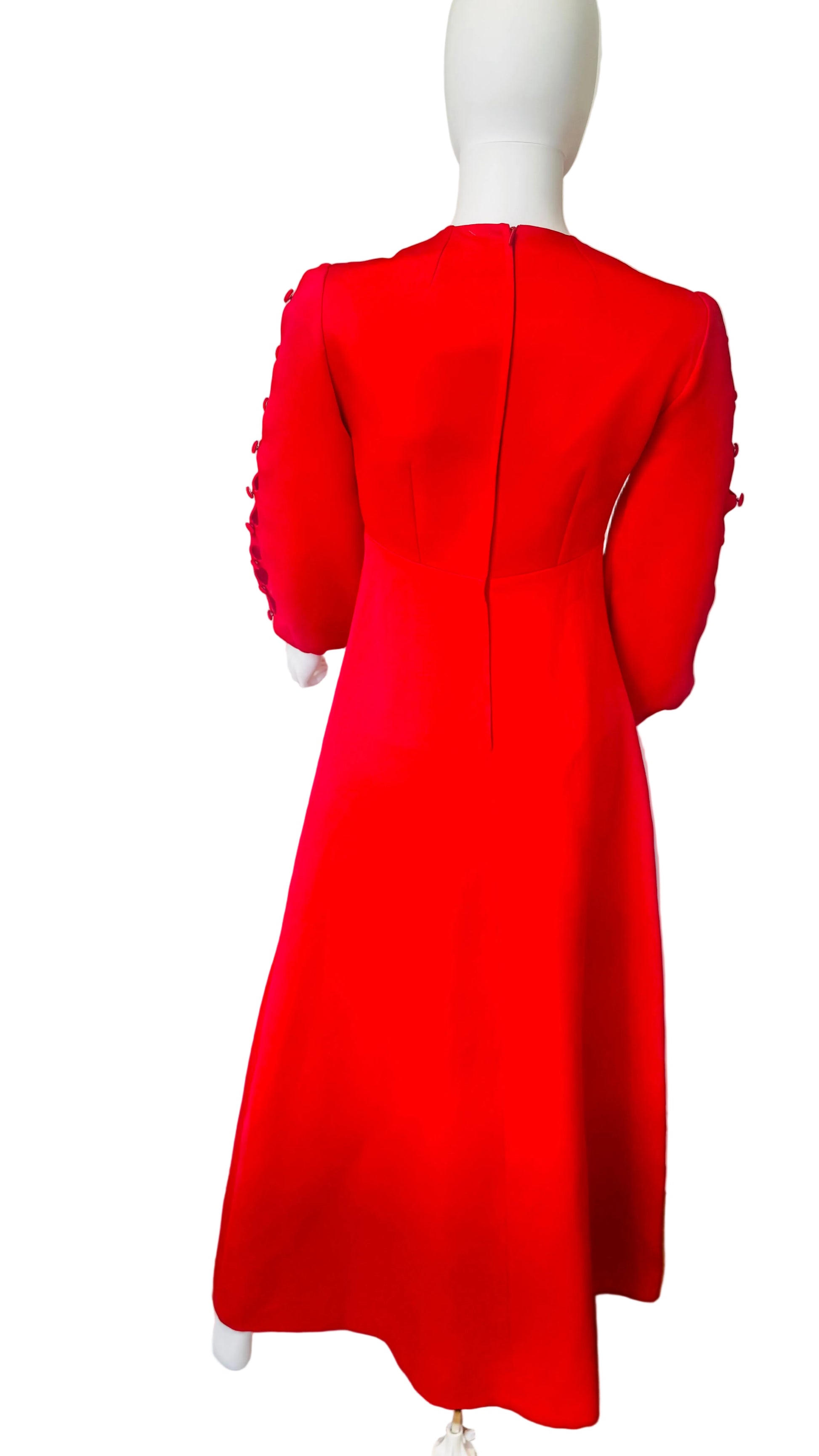 Embrace an air of timeless sophistication with the 1970’s Stunning Maxi Dress, a masterpiece that seamlessly marries elegance with modernity. Adorned with delicate detail sleeves and meticulously crafted covered button fastenings, this exquisite garment envelops the wearer in a sublime fabric. Perfect for a day at the races or an enchanting wedding celebration, it evokes a sense of grandeur and refinement.